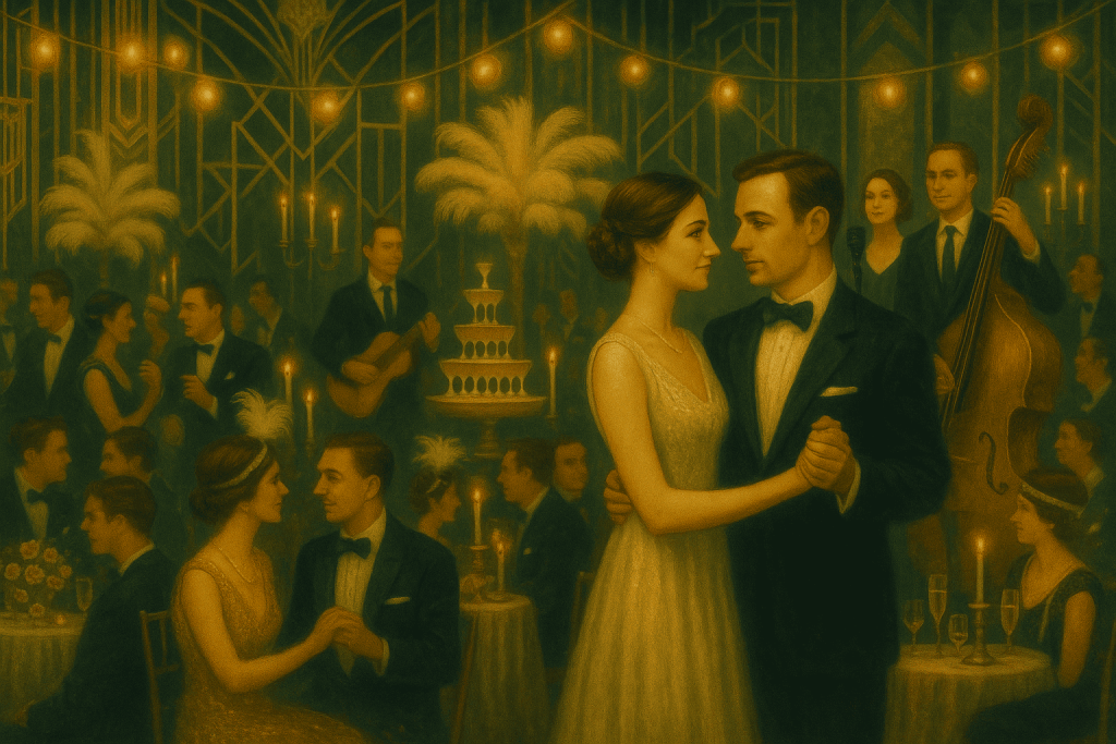 Pour un mariage à thème Gatsby ou inspiré des années 30, nous recréons l’atmosphère festive et élégante de l’époque.